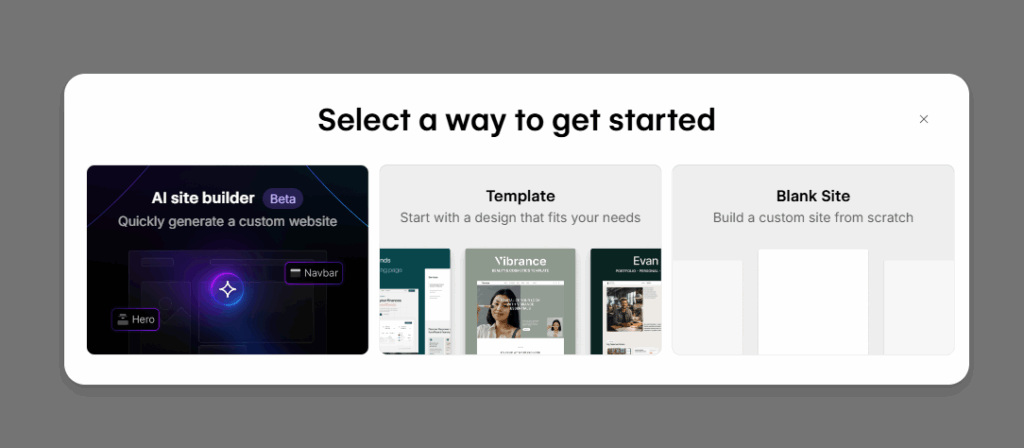 Há três maneiras de usar o Webflow: criando com IA, usando um template ou criando do zero.