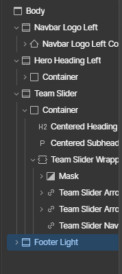 Arrastamos as seções Navbar, Hero section, Team e Footer.