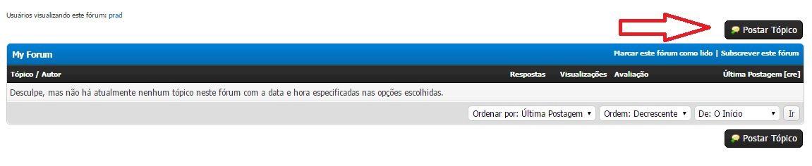 Por padrão, o MyBB criará um fórum chamado My Forum. Clicando nele, veremos um botão Postar Tópico.