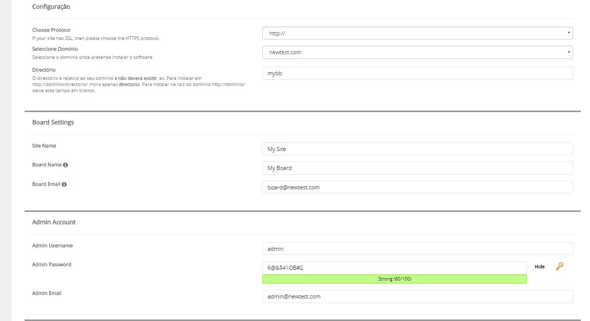 Em nosso exemplo, criamos o site http://newtest.com/mybb