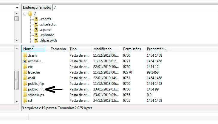 Estas informações confirmam que você está conectado ao seu servidor. Em seguida, depois que for feita a conexão, você terá acesso a diversos arquivos no servidor que estarão ao lado direito.